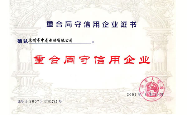 蘇州市重合同守信用企業(yè)證書(shū)